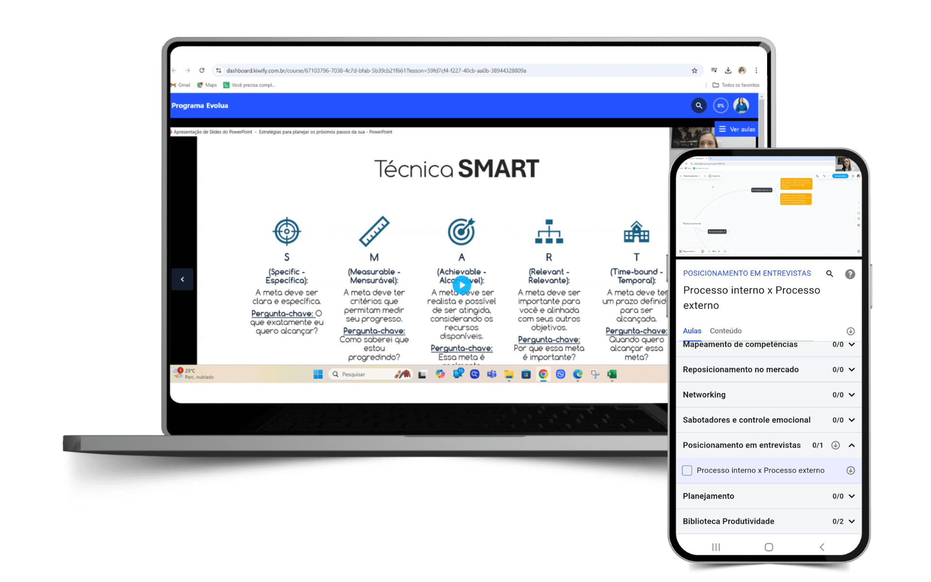 No Programa Evolua, você terá o passo a passo para se recolocar no mercado com segurança e estratégia. Transforme suas habilidades em diferenciais, supere bloqueios e desenvolva as competências que os recrutadores buscam. Após o programa você estará pronta para conquistar a vaga que realmente valoriza seu potencial.
